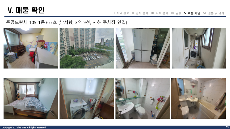 그런데 기분이 상하는 일이 있었습니다.... 나이가 있으신 남자 공인중개사 분이셨는데 질문을 계속하고 집에 대한 사진을 찍으니 실거주 목적으로 집을 사려고 온 사람이 아닌 공부를 하려고 온 사람이라고 생각을 하셨나봅니다. 기분 나빠하시는 것 같길래 사실 그 이후부터는 사진도 찍지 않고 질문도 하지 않고 그냥 보고 넘어오다보니 2개 동 정도는 그냥 휙휙 넘어왔습니다. ㅜㅜ