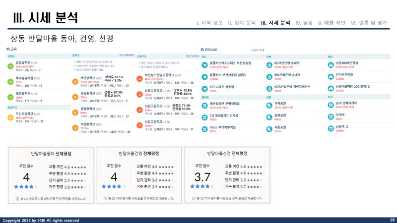 분석 결과, 지금까지 분석 했던 수도권 내 지역 중에서는 교통, 학군을 포함한 입지가 좋은 편인 것 같다는 느낌을 받았습니다.