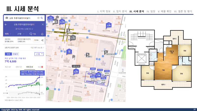 그러나 이번에 분석한 부천시 상동의 경우 거실을 제외 방2 화1이지만, 매수 가능한 단지들이 나쁘지 않아보였고 입지도 좋아보였기 때문에 분석을 진행했습니다.