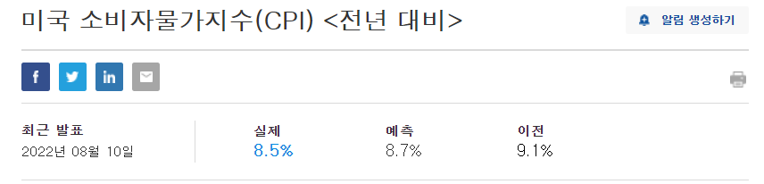 현지 시간 8월 10일 미국에서 인플레이션과 매우 밀접관 상관 관계를 가지고 있는 소비자 물가지수(CPI)가 발표되었습니다.