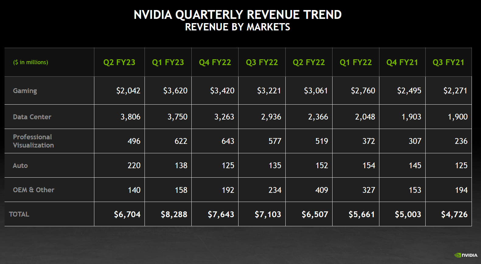 | Gaming | $2,042M | $3,061M | -33% |