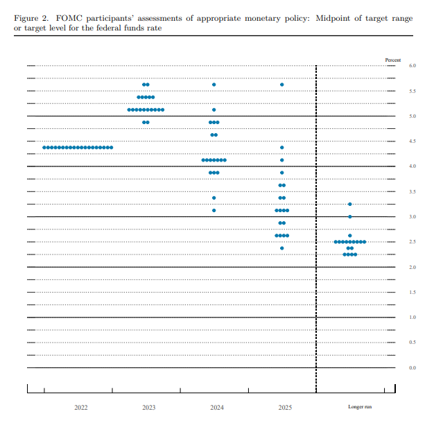 FOMC에는 매달 금리 점도표를 공개하는데요. 금리 점도표란 앞으로 연준이 금리를 어떻게 가져갈 것인지를 투표한 도표라고 볼 수 있습니다.
