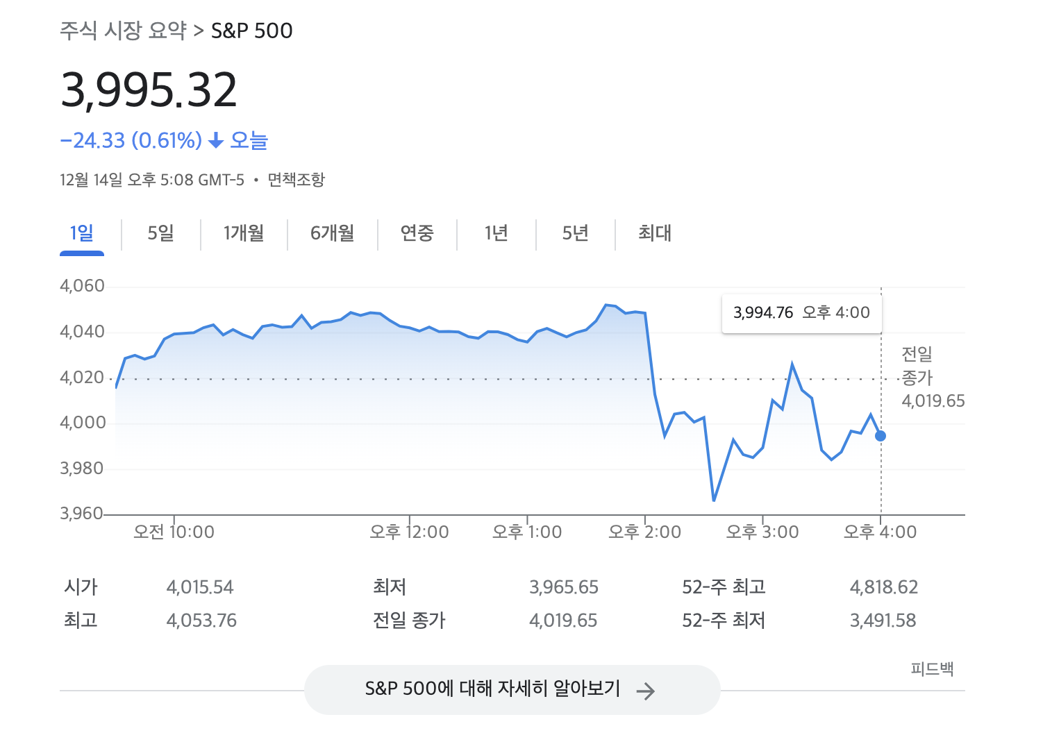 이번에도 기준 금리가 발표된 이후 미국 증시의 주가는 크게 하락을 한 상황입니다.