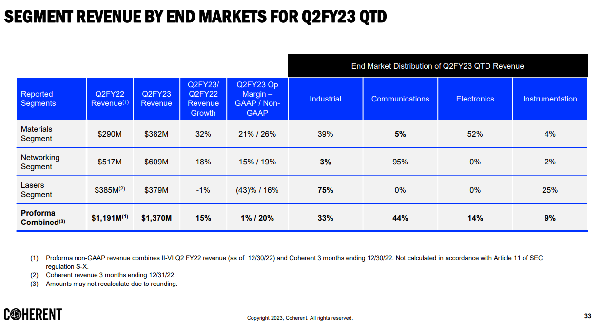 Coherent와 II-VI의 합병 이후 두 번째 실적 발표 결과가 나왔는데, 장 시작 이전에 빠르게 매출을 발표한 것은 실적 발표에 자신감이 있는 행동이라고 생각합니다.