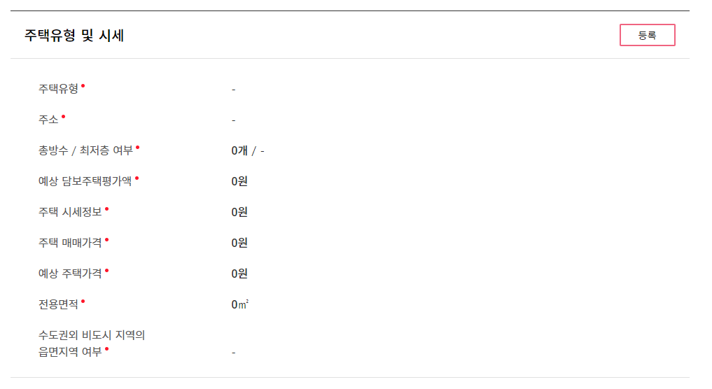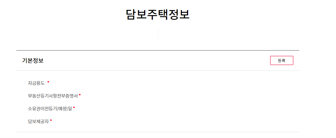 8. 이제 제일 중요한 담보주택정보를 입력할 겁니다. 먼저, 기본 정보를 입력합니다.
