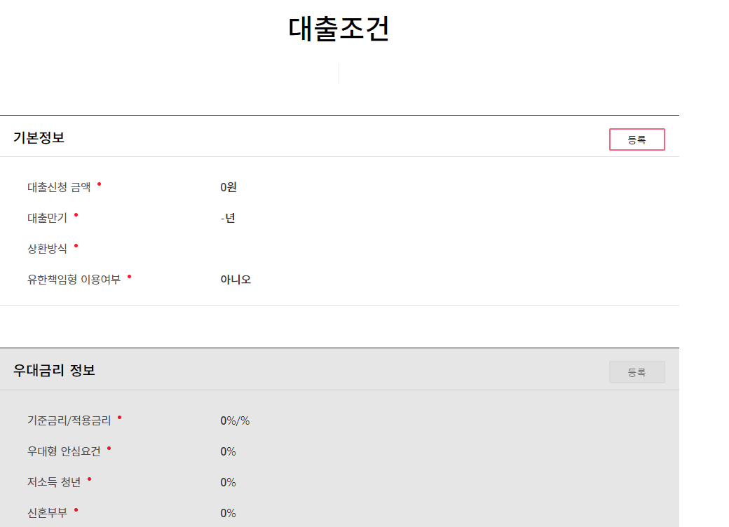 대출 조건 입력 후 대출 가능 여부가 나오기 때문에 확실한 정보를 입력해주세요.