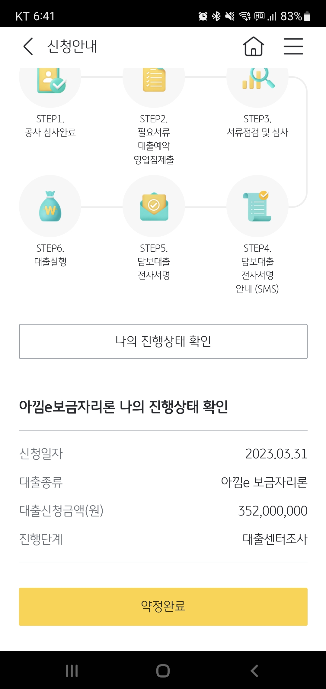 7. 이제 필요한 절차가 마무리 되면, 모바일 앱으로 전자 서명 등의 요청이 오게 되고 그 이후에 별다른 전화가 없으면, 대출 신청이 잘 마무리된 것이라고 합니다.