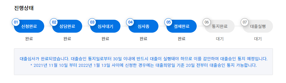 (대출 승인 통지 후 30일 이내에 반드시 대출이 실행되어야 하기 때문에, 알아서 날짜에 맞춰 대출 승인을 통지해준다고 합니다.)