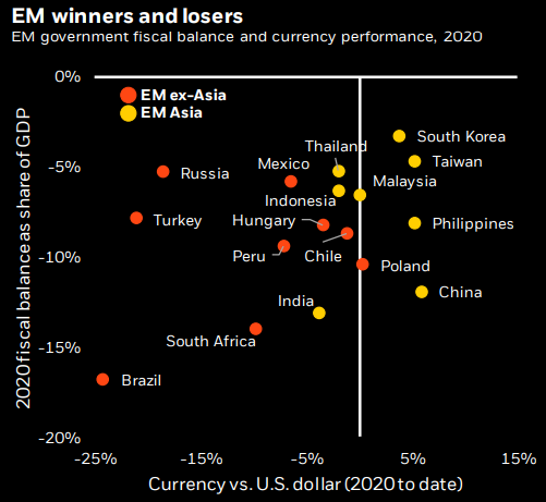 2021년 주기적인 글로벌 시장의 상승세와 바이든 행정부의 무역 정책의 혜택을 받게되어 펀더멘탈이 강한 이머징 마켓의 경우에는 큰 이익을 얻을 수 있을 것이라고 보고 있습니다. 또한, 실질 금리 하락과 달러화 약세는 2021년 이머징 마켓을 뒷받침해 줄 수 있는 또하나의 힘이 될 것입니다.