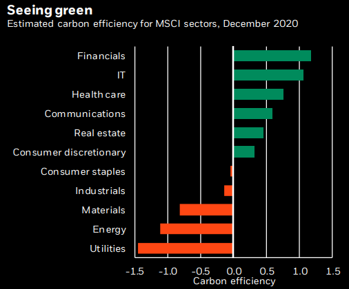 MSCI 섹터에 대한 탄소 효율성 전망 순위