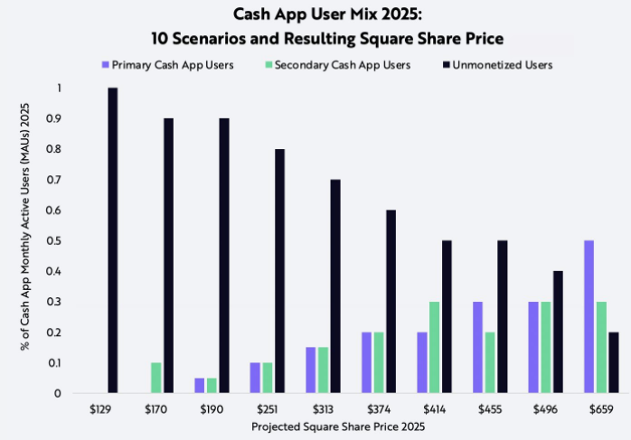 | 4 | 2025년에 Cash App은 7500만 MAU 중 또 다른 20%를 440달러로 수익화할 수 있어야함 |