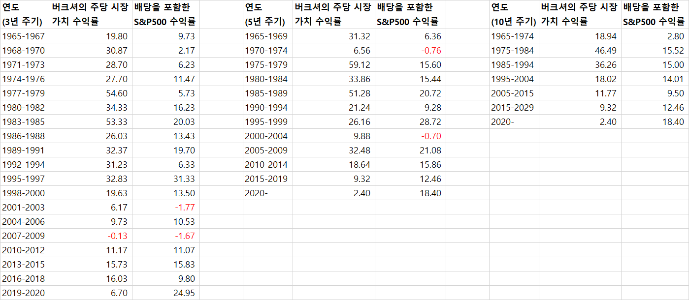 | 4 | S&P500 수익률은 +인데, Berkshire Hathaway의 시장 가치 수익률은 비정상적으로 낮은 -일 경우 |