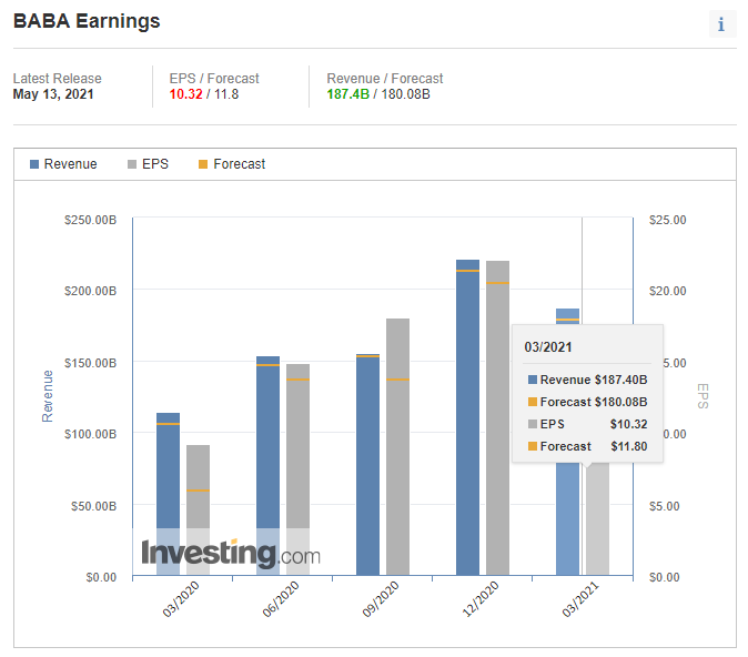 이번 주에는 Alibaba (BABA)에서 실적 발표를 했습니다. 실적 발표 결과가 어떻게 나왔는지 확인해볼까요?