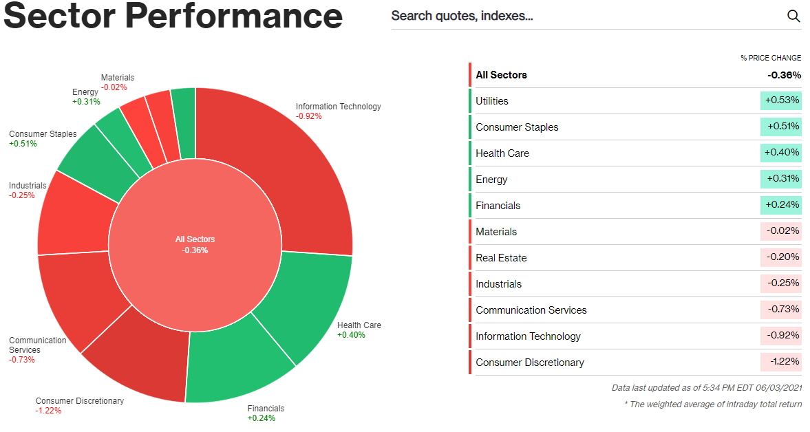 | Dow Jones | 34,577.04 | -0.07% |
