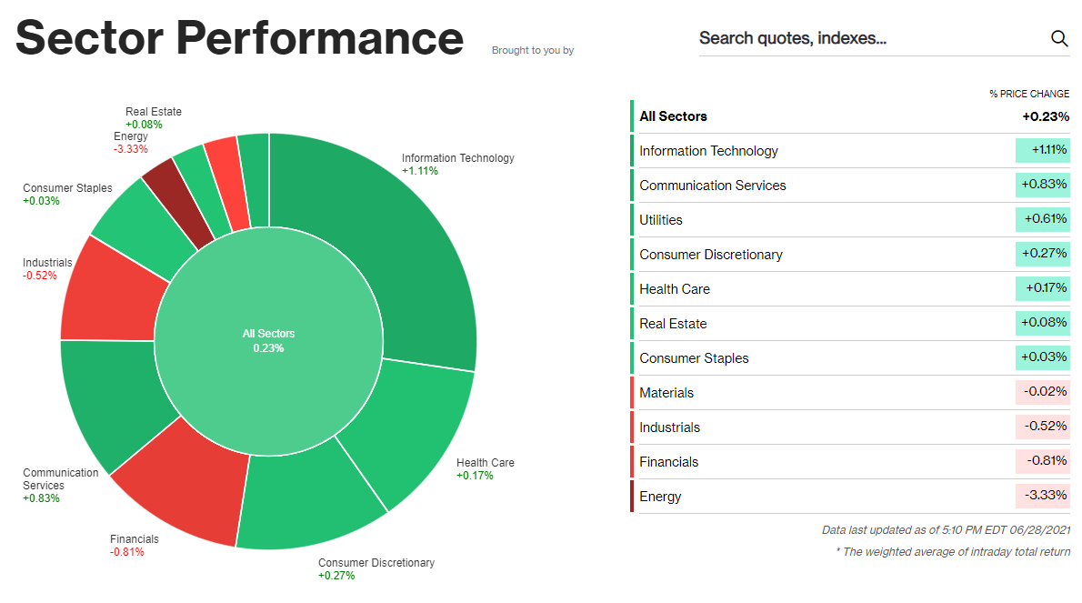 저번 주는 경기 민감주(에너지, 산업, 금융, 소재)가 크게 상승한 주로 정리할 수 있을 것 같다.
