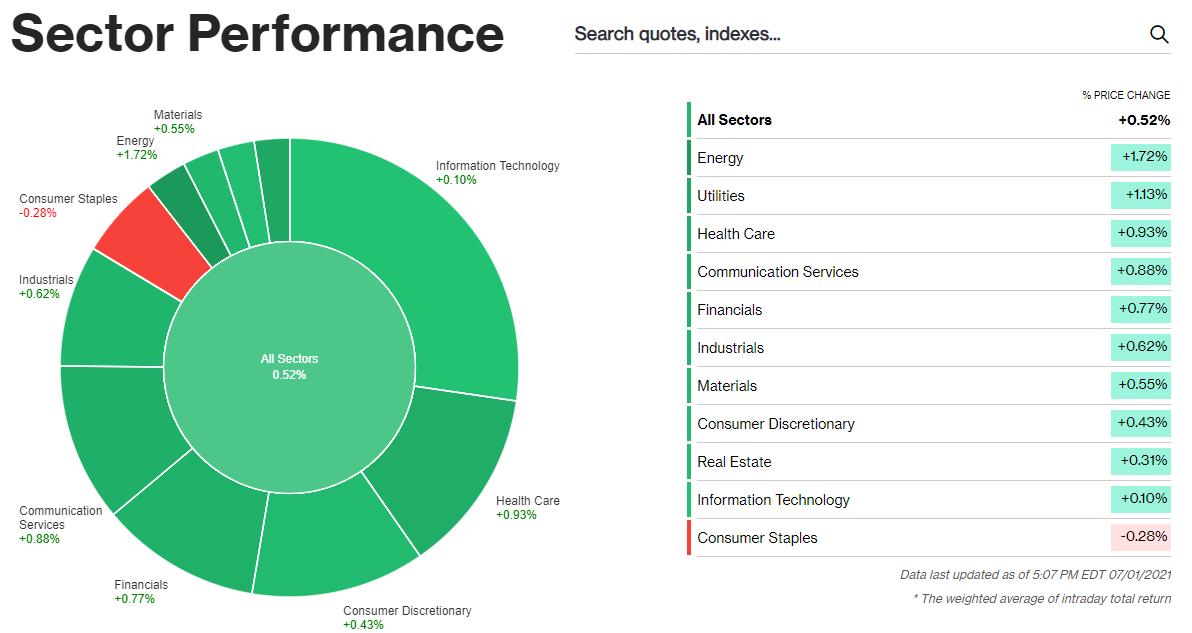 | Dow Jones | 34,633.53 | +0.38% |