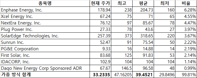 ICLN ETF 보유 종목별 목표 주가와 현재 주가 - 21년 7월 23일 기준 <추가>