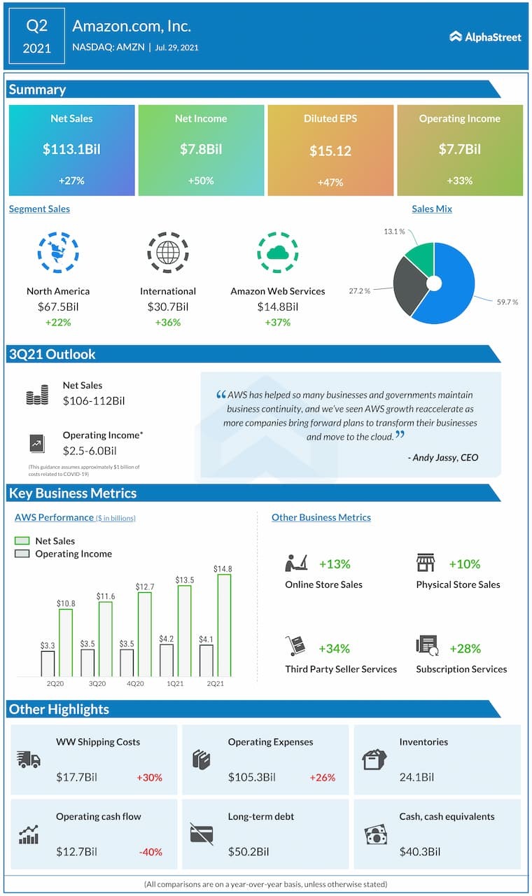이번 주에는 Amazon (AMZN)에서 실적 발표를 했습니다. 실적 발표 결과가 어떻게 나왔는지 확인해볼까요?