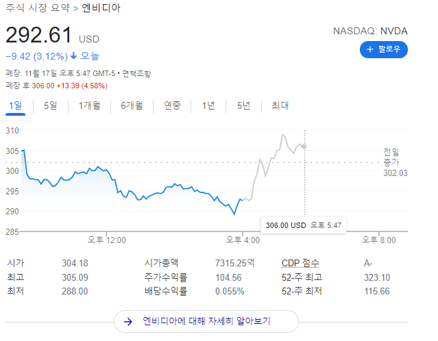 이번에 NVIDIA(NVDA)에서 실적을 발표한 뒤 주가는 3% 정도 하락을 했습니다. 다만, 시장이 전체적으로 하락을 했기 때문에 그에 따른 영향일 수 있습니다.