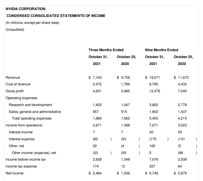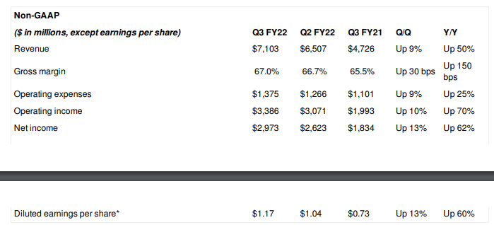 이번에는 NVIDIA에서 발표한 실적 자료를 가지고 조금 더 자세하게 확인해보겠습니다. 기술주의 경우 GAAP이 아닌 Non-GAAP을 보는 것이 맞다는 생각이 들어 Non-GAAP 데이터를 가지고 왔습니다.