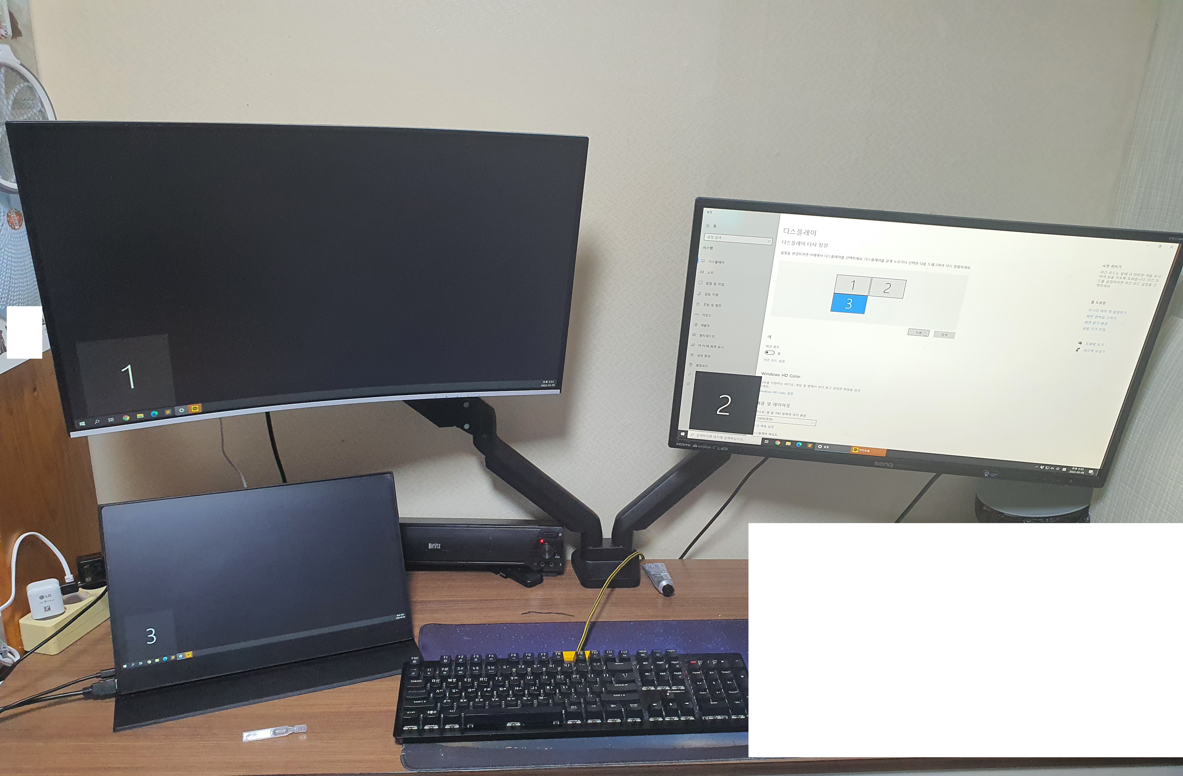 그동안 더블 모니터로 데스크탑을 구성하여 사용을 했었는데 모니터가 하나 더 있었으면 좋겠다라는 생각이 종종 들었습니다. 복지 포인트가 딱 살 수 있는 금액만큼 남아서(핑계) 이것저것 찾아보다가 이 제품이 좋을 것 같아 구매하게 되었습니다.