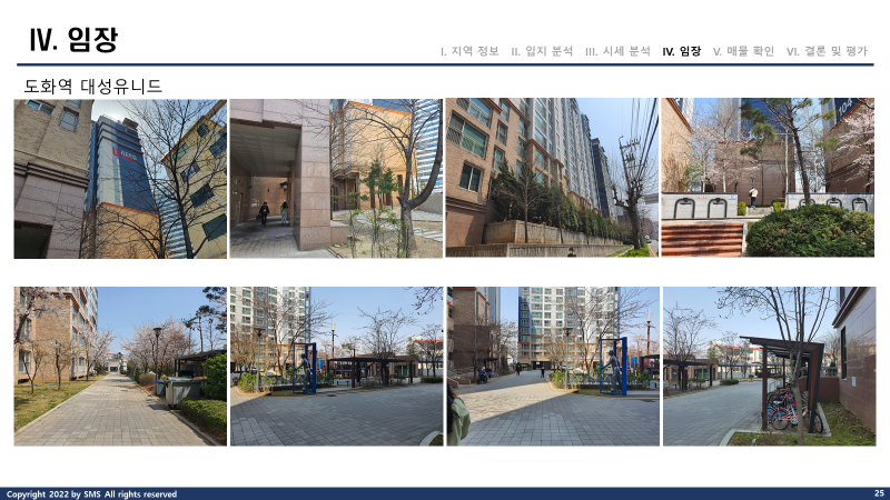 결론 및 평가 장표에서 설명을 드렸지만, 단지 임장 결과 미추홀구 도화동은 매력이 상대적으로 떨어진다고 판단하여 매물 임장을 진행하지 않으려고 합니다. 처음으로 단지 임장을 가봤는데요. 너무 힘들었습니다 ㅠㅠ (2만 5천보를 걸었더라구요 ㅎㅎ)